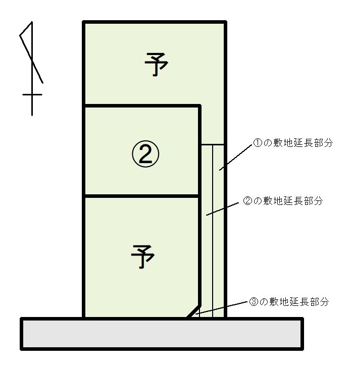 ※区画①、区画②、区画③ 敷地延長あり 地役権設定あり