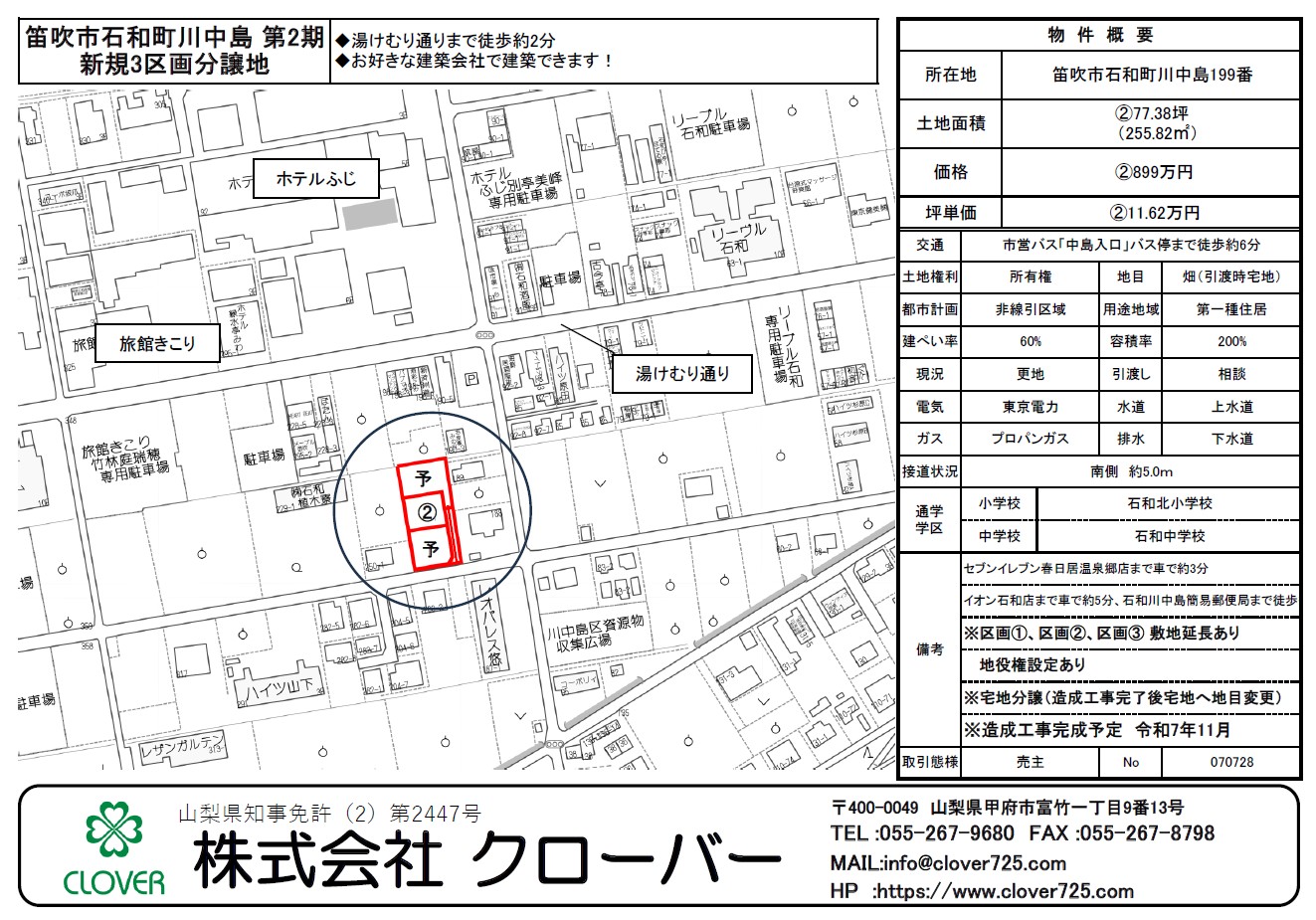 物件名 | 笛吹市石和町川中島【第2期】新規3区画分譲地 |