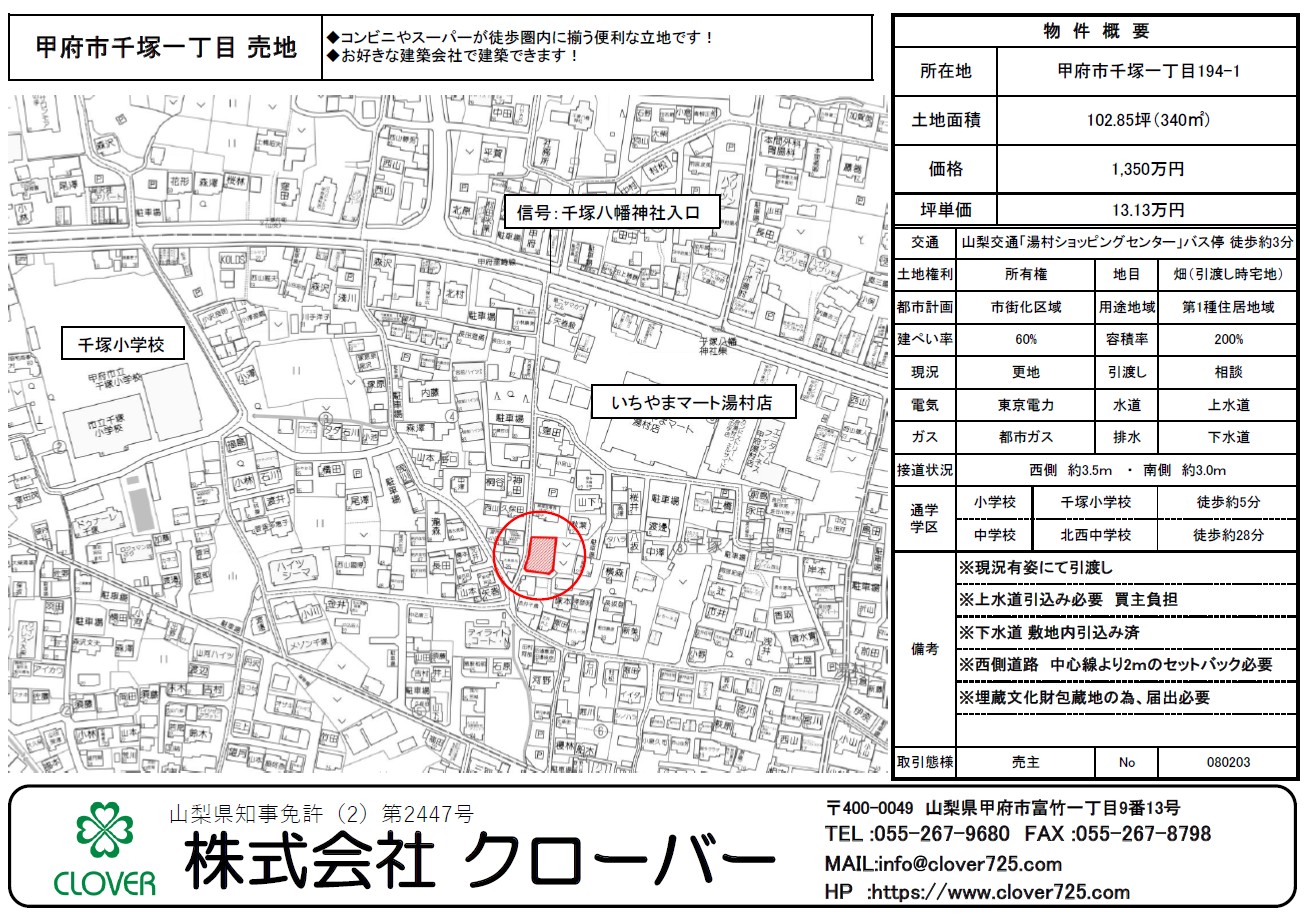 甲府市千塚1丁目 売地