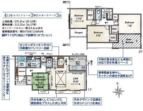 | 建物面積 | 2号棟 113.32㎡(34.27坪)