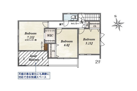 ※インナーバルコニー部分8.57㎡含む 2号棟 111.72㎡(33.79坪) ※インナーバルコニー部分8.63㎡含む 3号棟 110.54㎡(33.43坪) ※インナーバルコニー部分6.62㎡含む |