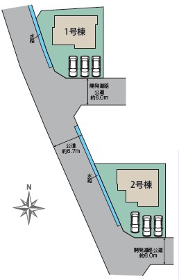 | 接道 | 南西側 約6.7m、分譲地内 開発道路 約6.0m |