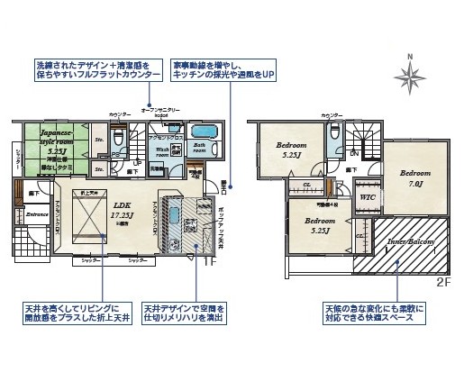 | 間取り詳細 | 1・2号棟 1階 LDK・和1/2階 洋3 |