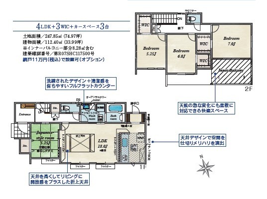 | 建物面積 | 2号棟 112.40㎡(33.99坪)
