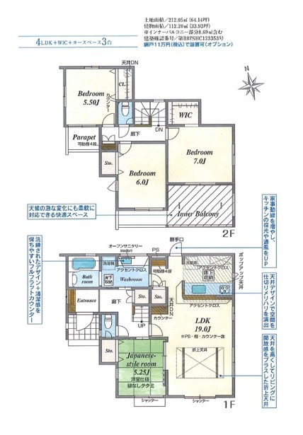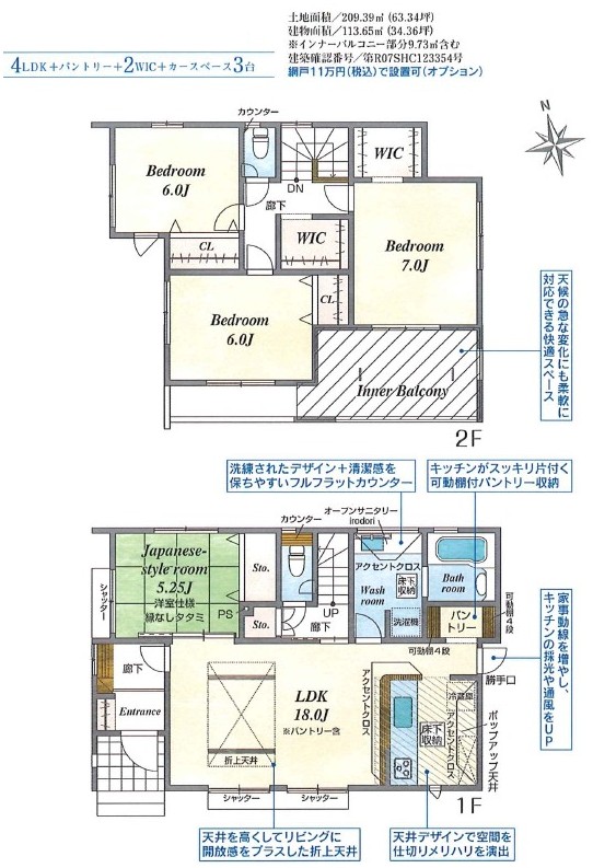 2号棟 212.05㎡(64.14坪) 3号棟 209.39㎡(63.34坪) |