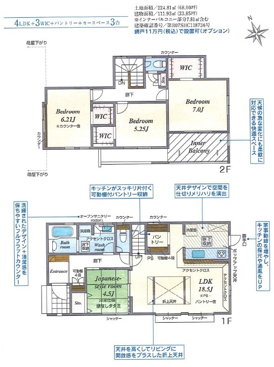 17.5帖以上の広々としたLDKと、来客時に便利な3台分の駐車スペース付き! 徒歩圏内に幼稚園が複数あり、子育て世代に安心の立地です♪
